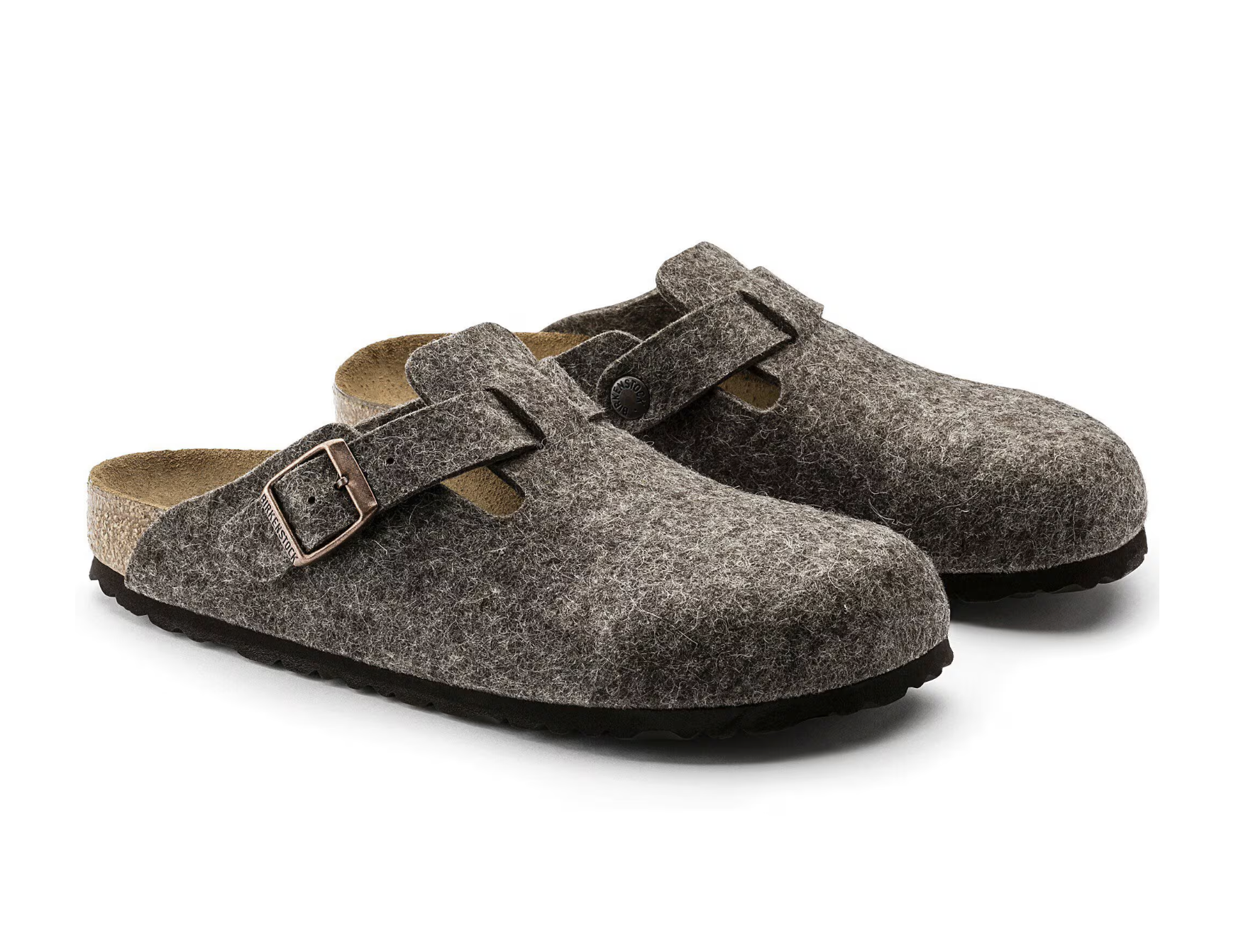 Birkenstock's most classic, versatile clog takes on one of the season's top fabrics. The Boston gives you an easy, slip-on design that feels instantly laid-back in soft wool felt. Complete with legendary BIRKENSTOCK design elements, like a contoured cork-latex footbed for the ultimate in support.
