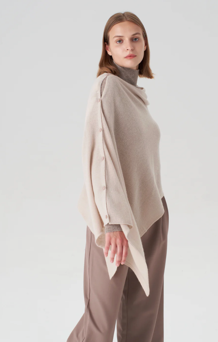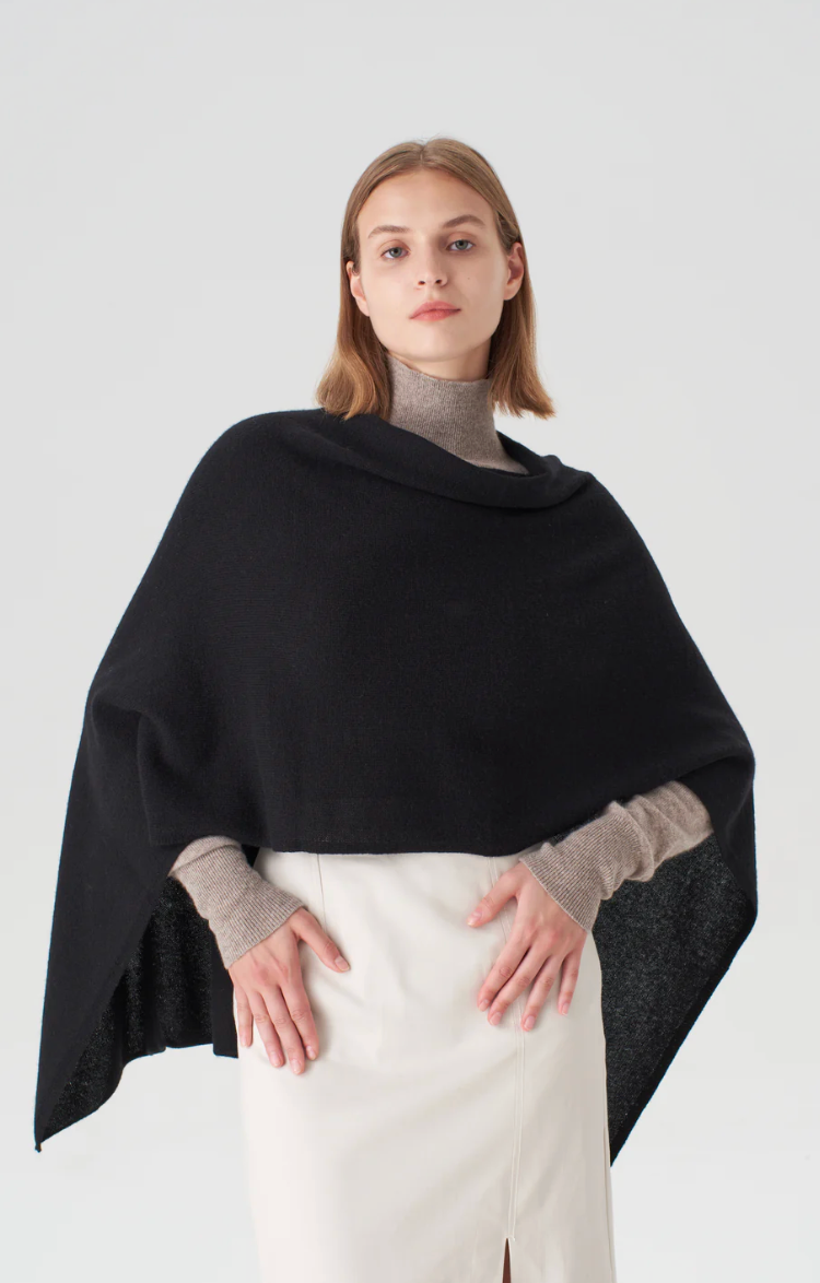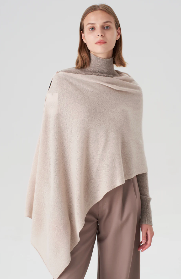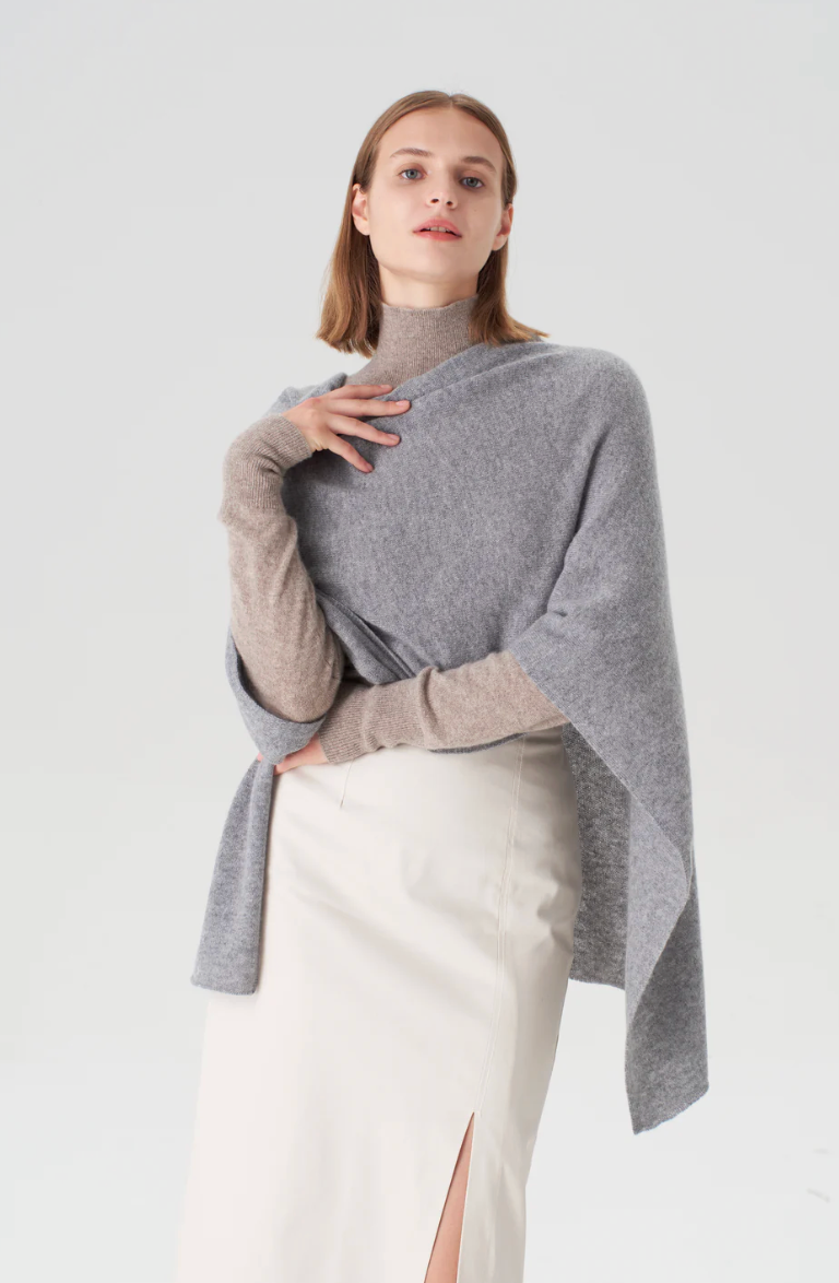 A versatile and luxurious accessory that effortlessly transforms from a chic poncho to an elegant regular scarf. Crafted from the finest quality cashmere, this piece is a testament to superior craftsmanship and adaptability, offering style and comfort in one.