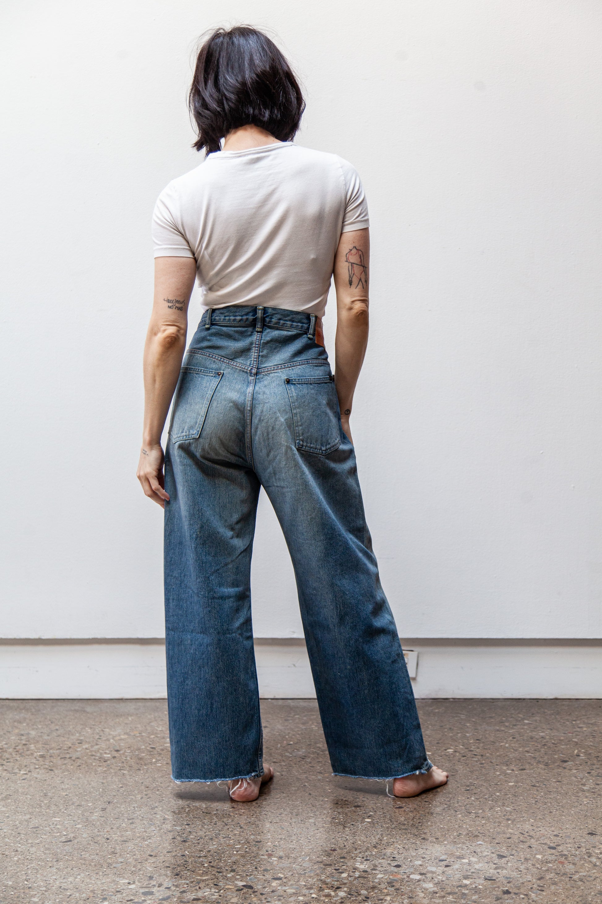 Classic five-pocket construction with a button fly. Each pair is hand-distressed in Japan, giving every jean a distinct character that will evolve beautifully with wear. Denim softens and loosens after the first wear.