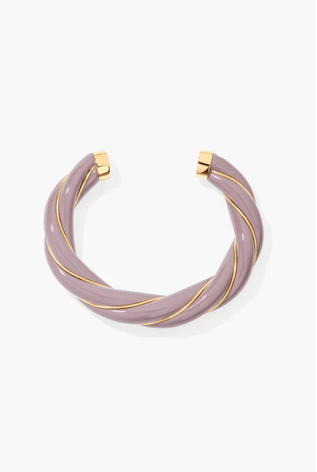 Twisted Diana bangle in hazelnut-colored resin, gilded with 750/1000 yellow gold.