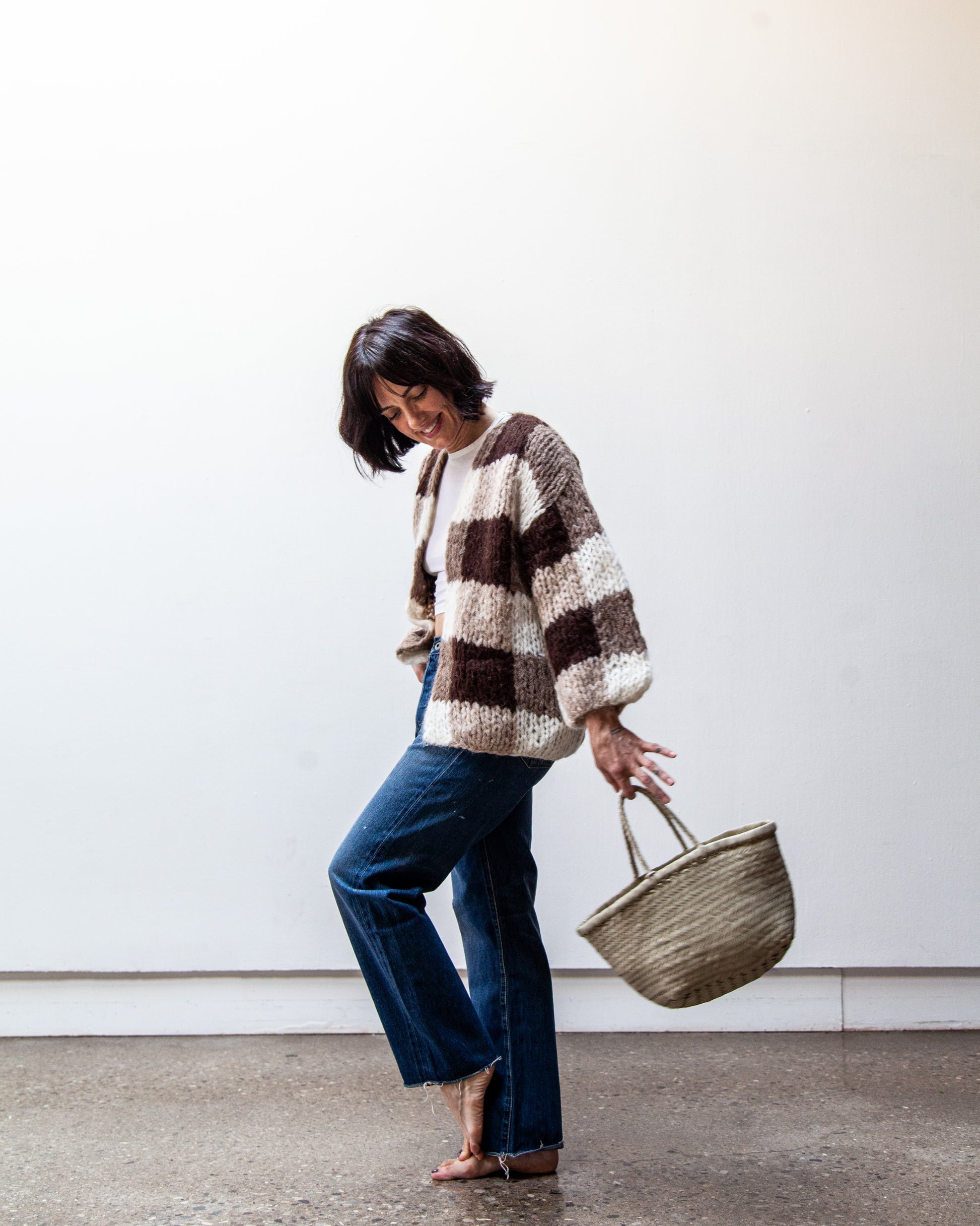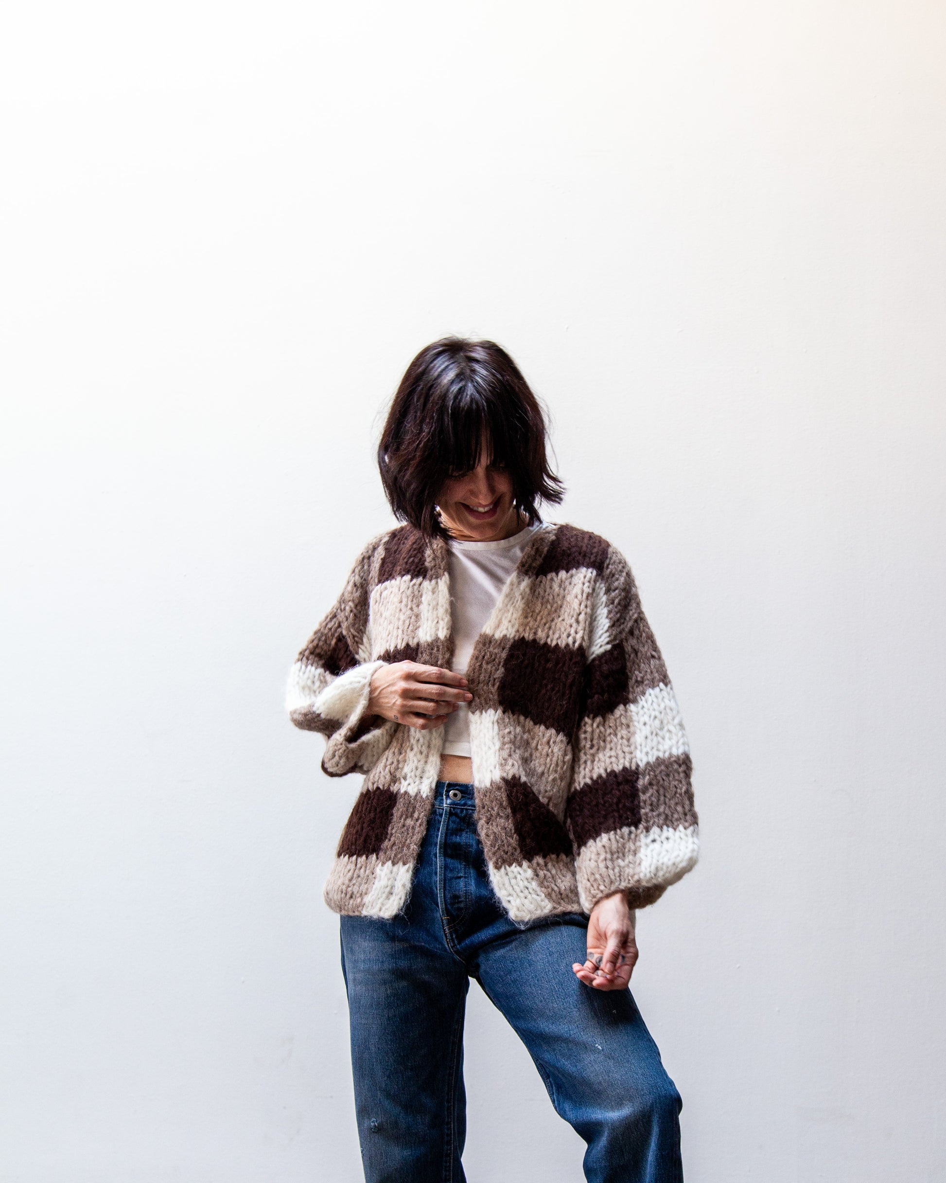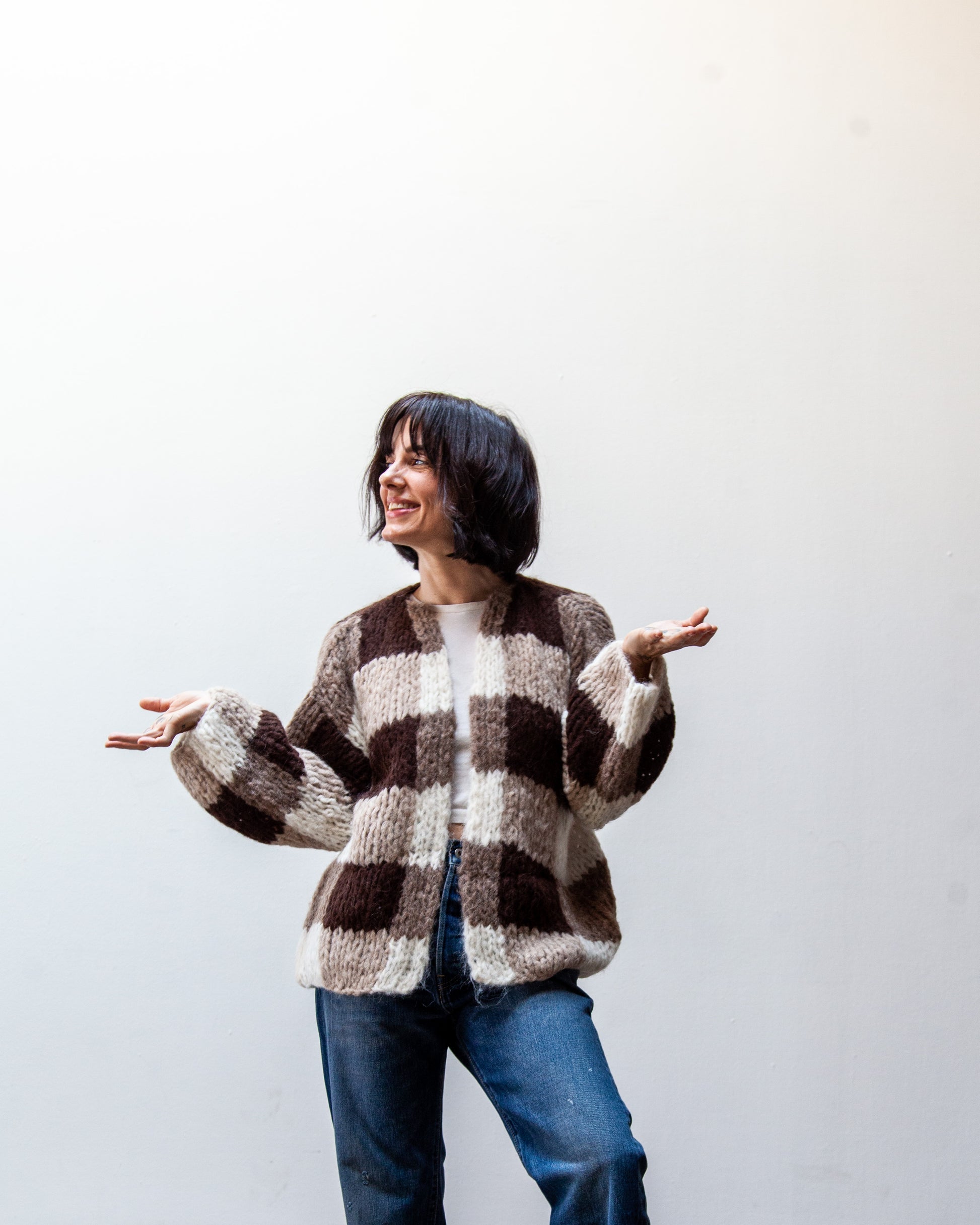 Maiami offers a modern perspective on traditional hand knitting. Each piece is carefully crafted, reflecting a modern aesthetic and unique colour combinations that are central to the brand's identity. Welcome, The Fleecy Alpaca Checkered Cardigan