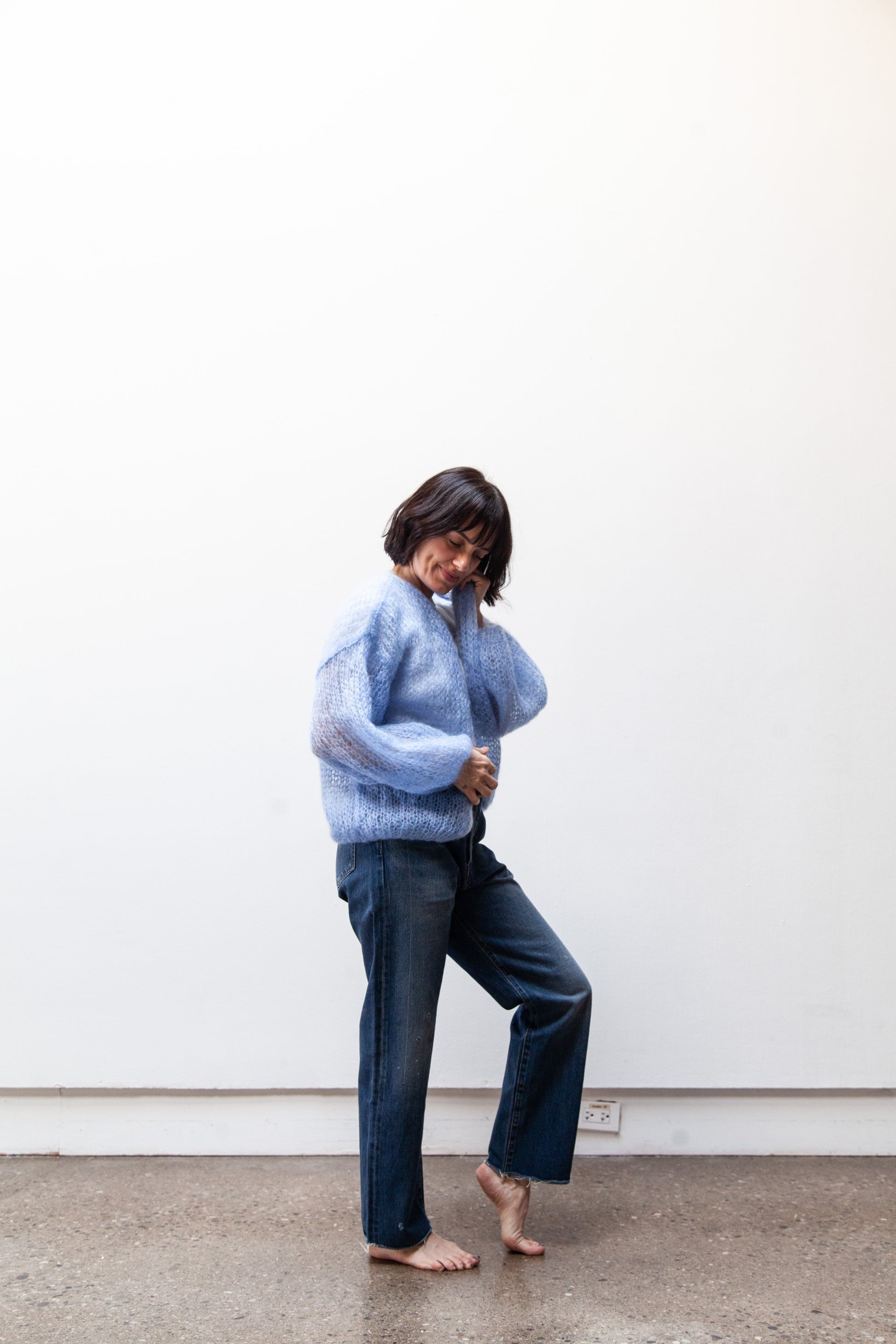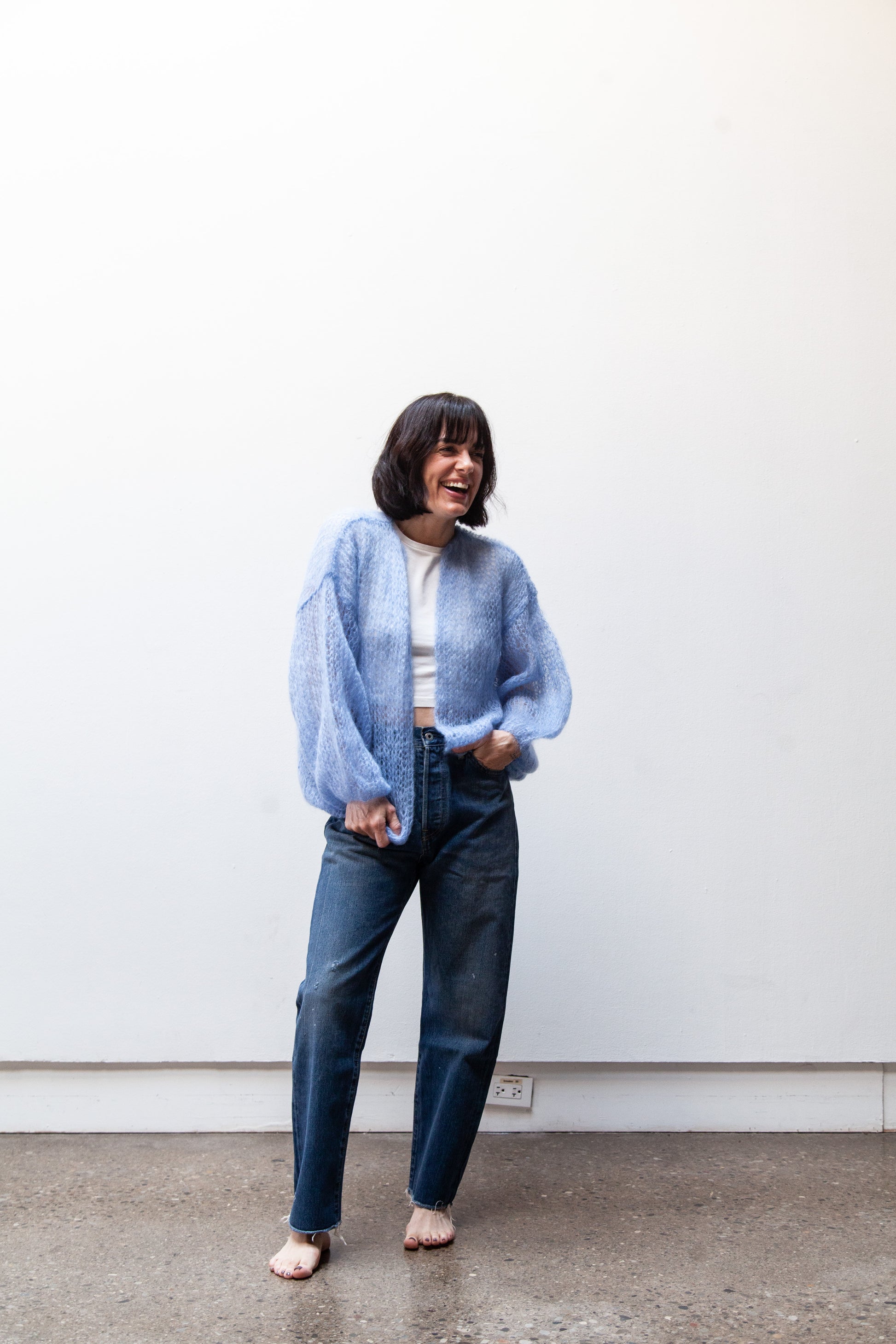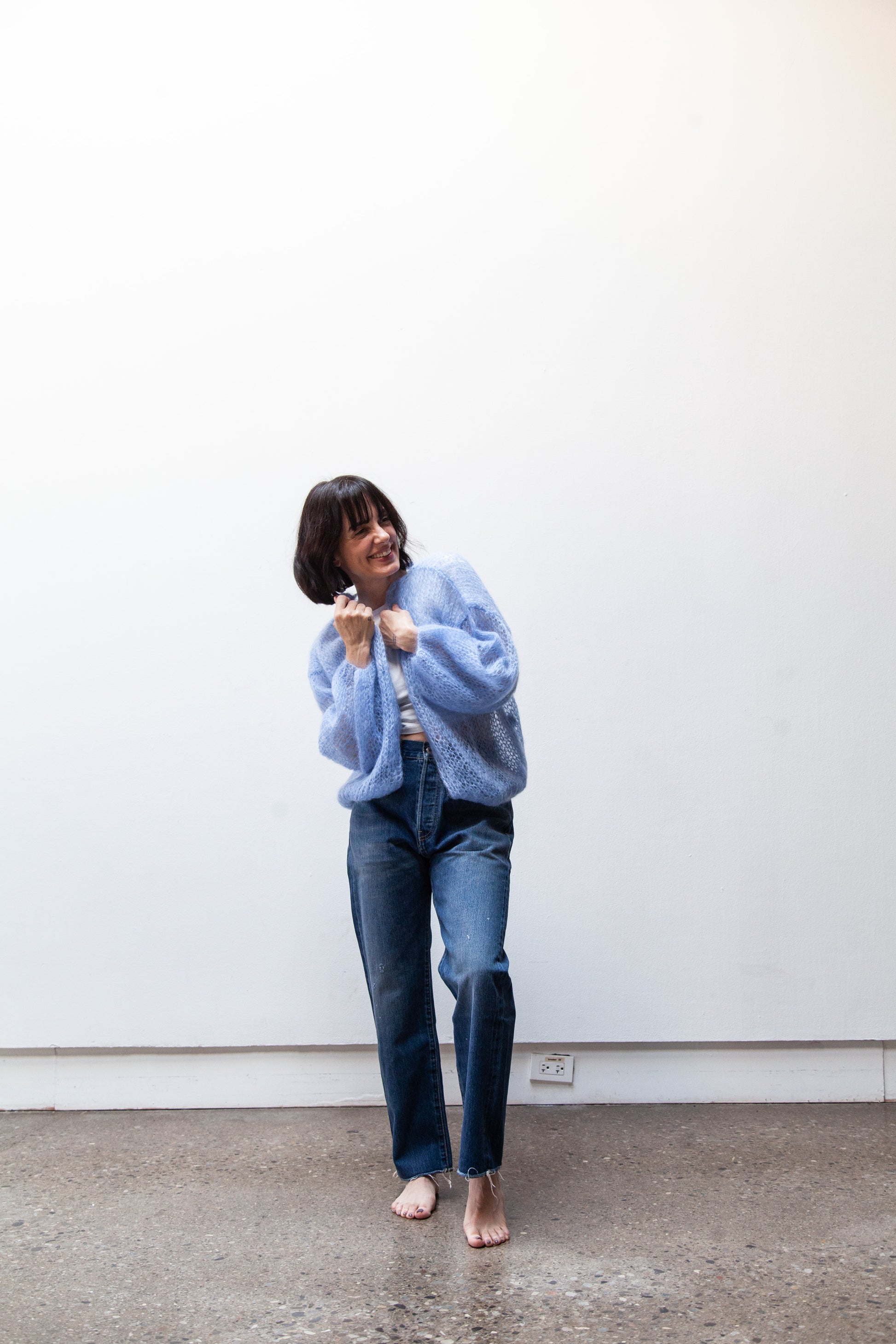 You will love this cardigan shape as much as we do – the bomber! Here in a light mohair version for spring, ready for summer.